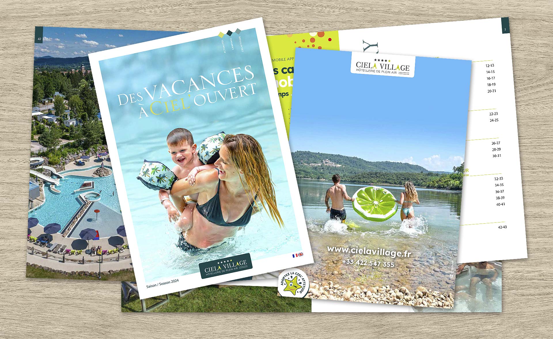 Réalisation de la plaquette de la chaine de Campings Ciela Village, 48 pages – 16 campings